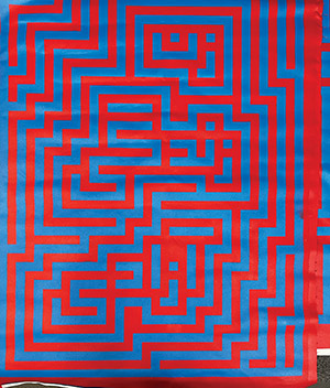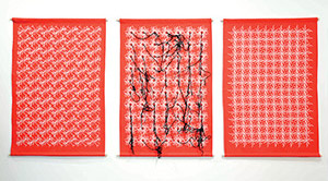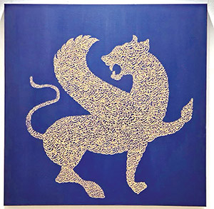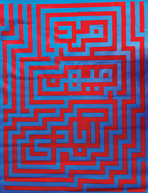 Each work exhibited by Kourosh Beigpour in Mandal is informed by his mastery of calligraphy and typography and based on his deep understanding and study of ancient Persian philosophy of sacred spaces and mysticism. Each panel measures 51 x 36 inches.