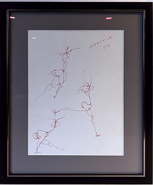 Original signed drawing, red ink on paper by the late master Ardeshir Mohassess measures 14 x 10.5 inches unframed and 17 x 20 inches framed.
