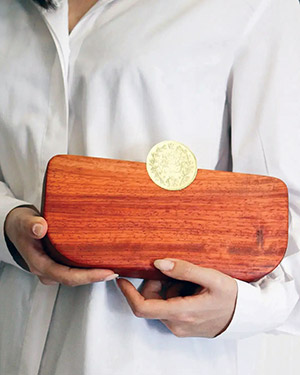Toghra Wooden Clutch designed by Hamed Mirzaei