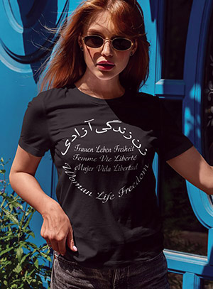 Seventeen t-shirts, one powerful message: Support the Woman, Life, Freedom, movement for Iran with these striking designs from Maison de la Mode.