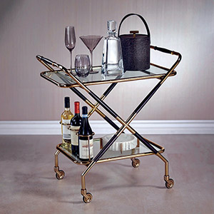 Enhance your home with the elegant allure of the ZODAX Palomar Bar Cart. This exquisite two-tiered bar cart in striking gold and black is not only stylish but also functional. Elevate your entertaining experience with this sophisticated addition to your home decor. Measurement: 29 x 17 x 27 inches.