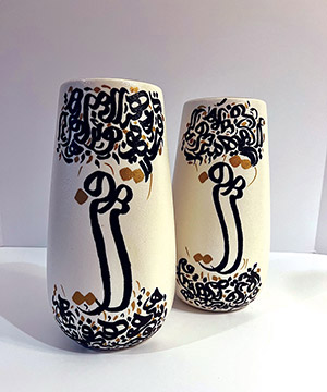 Elevate your space with these exquisite 10-inch tall oval Ceramic vases adorned with hand-written Persian calligraphy. Perfect for fresh or dried flower arrangements, these vases also double as stunning home decor pieces.