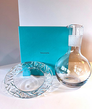 Tiffany & Co. 8 inch vintage crystal plate and a 45 ounce crystal diamond point round decanter.