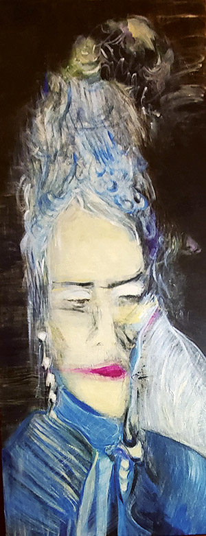 A painting, acrylic on canvas measuring 12 x 30 inches framed by artist Marjaneh Afkhami from her Queen Series.
