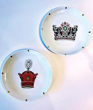 A Pair of PAHLAVI Crown Hand-Painted Plates by Elika Dehghani