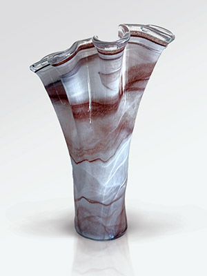 The white and brown Vase, standing 16 inches tall with a graceful silhouette, showcases timeless elegance through its handcrafted aventurine glass. Made in Murano, Italy.