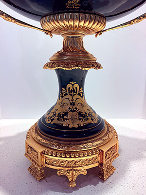 COBALT BLUE PORCELAIN & GILT BRONZE CENTERPIECE