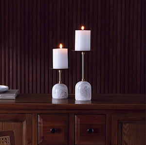Stunning décor set, featuring two Silene vases and two Hara candle holders. The Silene vases, crafted in ceramic with a timeless white marble finish and graceful fluted detailing, measure 8.5 inches and 7 inches tall, perfect for displaying botanicals or styled as a pair. Complementing them are the Hara candle holders, each blending a solid white marble base with a polished gold-tone stem, measuring 10 inches and 6.25 inches tall. Together, this four-piece collection offers a harmonious balance of modern sophistication and timeless design, making it a striking addition to any mantel, sideboard, or tabletop display.