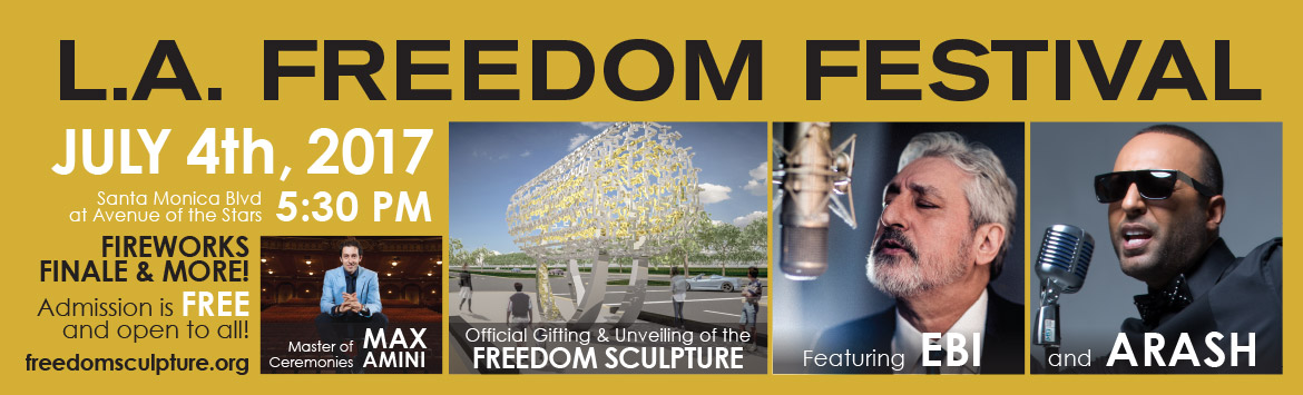 The Freedom Sculpture will be unveiled and officially gifted in a free public ceremony at the culmination of the inaugural L.A. Freedom Festival, which will take place on Tuesday July 4, 2017 starting at 5:30pm at a street closed section of Santa Monica Blvd. and Century Park East. In addition to the unveiling, the L.A Freedom Festival will be a celebration of diversity and unity in Los Angeles, featuring amazing multi-ethnic foods, diverse musical acts, a range of celebrity speakers and much more.