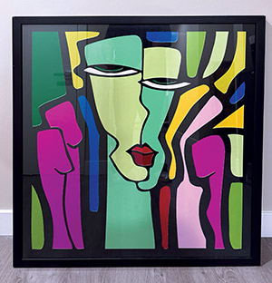 A digital “giclée print” portrait by artist Shahin Amir-Arjomand, son of the cultural legend Lily Amir Arjomand. Using vibrant colors in the cubist style. Measuring 38 x 33 inches.