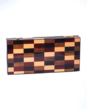 Elevate your game night with the Bey-Berk Art Deco Backgammon Set by Jonathan Adler, a modern take on classic design. This Art Deco–inspired set features a striking checkerboard pattern crafted from exotic wood, combining durability with luxury. Measuring 21 x 9.75 x 2.5 inches, it includes richly crafted wooden pieces and a smooth finish, making it a stylish addition to any game room or living space