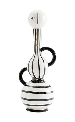 Add a touch of Russian Constructivism to your decor with the Vienna Decanters. Handcrafted in high-gloss porcelain with black, white, and gold accents, these decanters feature gasket-sealed ball stoppers, making them both functional and artful additions to any cocktail hour.