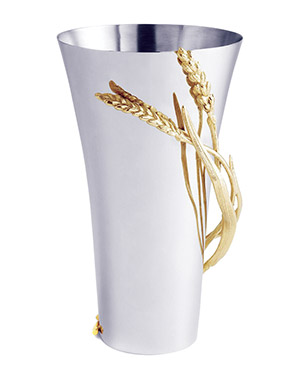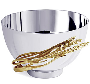 Add timeless elegance to your home with the Michael Aram Wheat Collection Bowl and Vase Set. Crafted from stainless steel and adorned with gold-plated wheat details, these pieces symbolize abundance and sophistication.